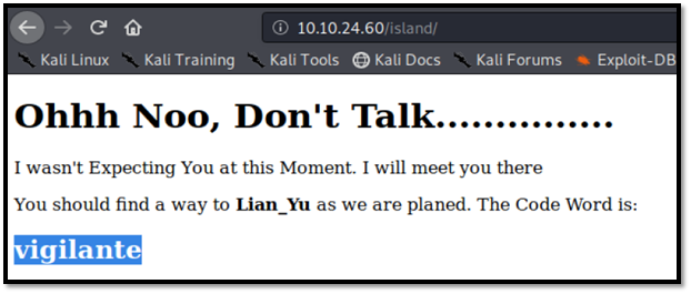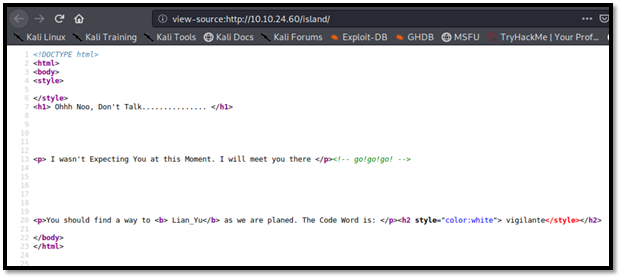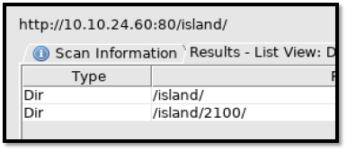 I run dirbuster again. (Dirbuster: http://10.10.24.60/island/) because I still dont have any other clue.