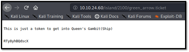 Okay, we got successfully got another one. (http://10.10.24.60/island/2100/green_arrow.ticket)