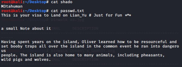 We get like a password for shado. And "message" from passwd.txt. I felt im on the dead route. If M3tahuman is really a password. But, where can we get the username??