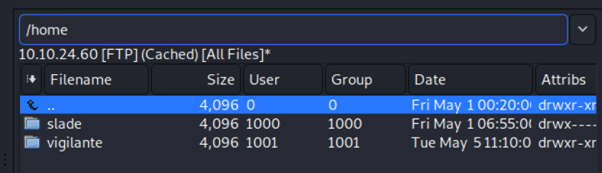 So, I decide to open ftp again using gftp. I get that there is another user other than vigilante. (/home/vigilante to /home discovered that there is 2 user). Which is slade and vigilante.