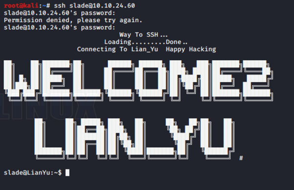 I try to ssh using slade user. With Password: M3tahuman.