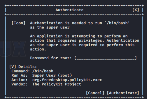 Seems like, pkexec can be run with root privileges. To know more about it we run,
